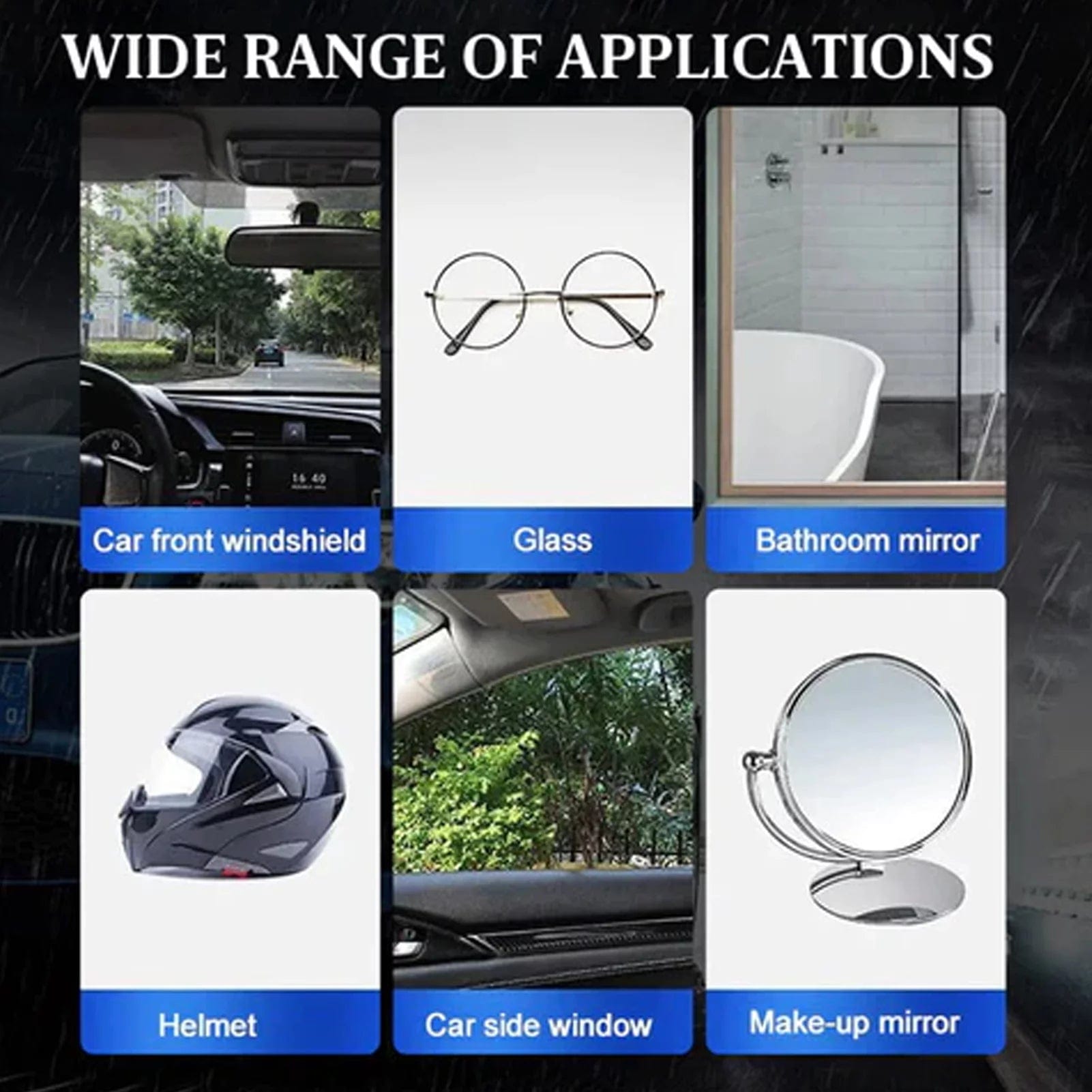 Versatile Use: Foggone™️ is suitable for all types of vehicles, including cars, trucks, SUVs, and more. Easy to use at home and car! Treat your car windows and car mirrors with this water-repellent coating, or coat them on bathroom glass, vanity mirrors, glass doors, and more.